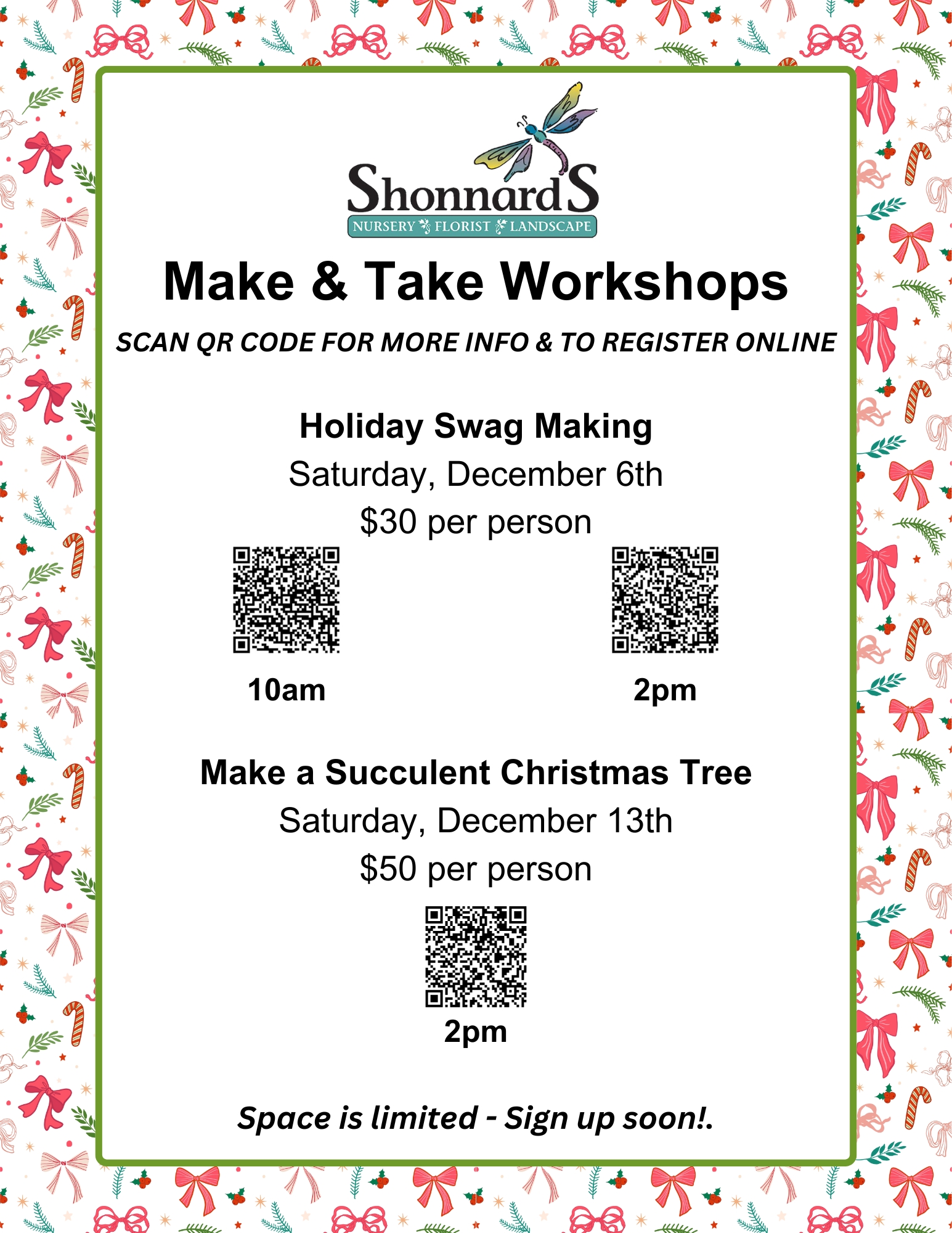 We will guide you through the steps to create a succulent Christmas tree made with succulent cuttings and fresh greens. You can choose the assortment of succulents to make it tailored to your style!